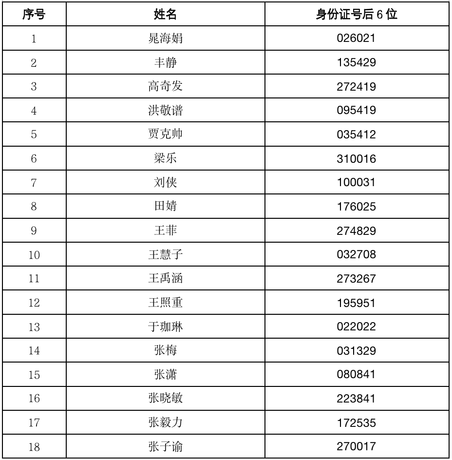 参加笔试人员名单见后。