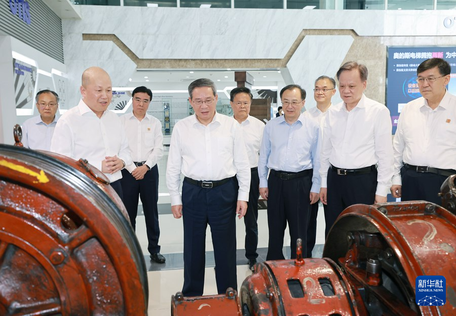7月22日,中共中央政治局常委、国务院总理李强在天津调研。这是李强在位于滨海新区的奥的斯电梯(中国)有限公司了解企业研发情况。新华社记者 王晔 摄