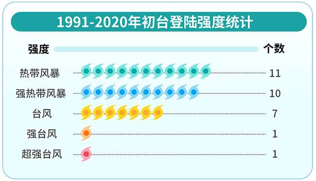 1991-2020年初台登陆强度统计。丁茜制图 新华社发