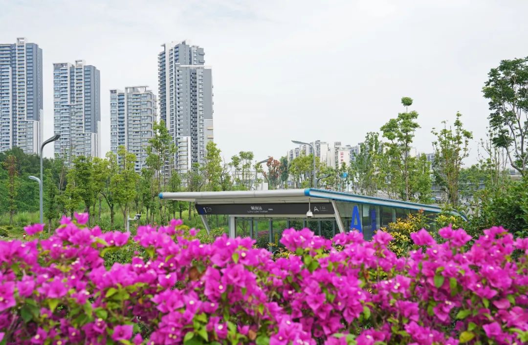 地铁口紫薇花盛开。天府新区供图