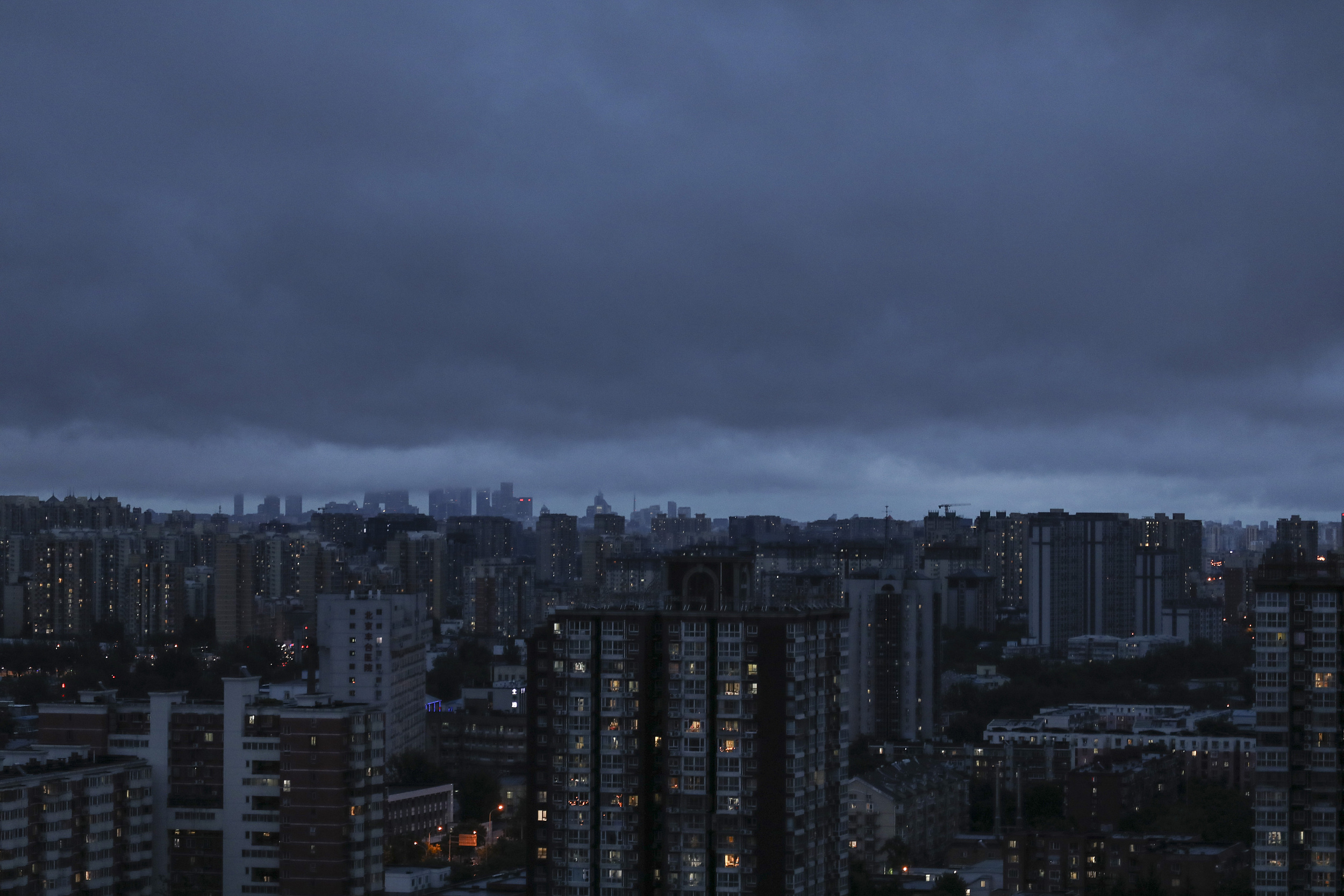 2023年7月30日,北京,城区上空堆积着厚厚的积雨云层。视觉中国供图