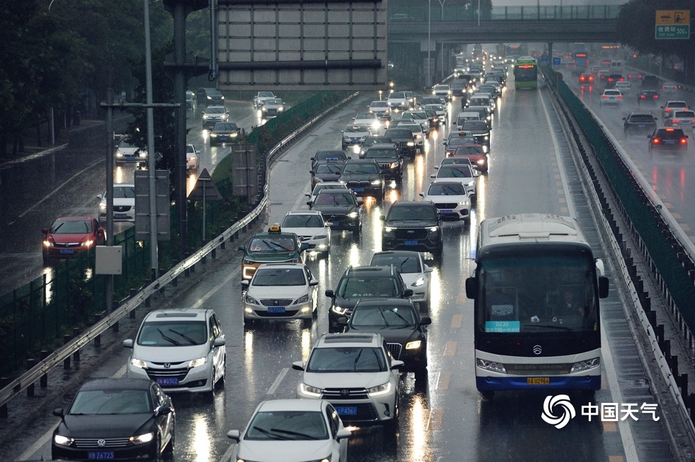 7月31日,北京降雨还在继续,给早高峰出行带来不利影响。中国天气网王晓 摄