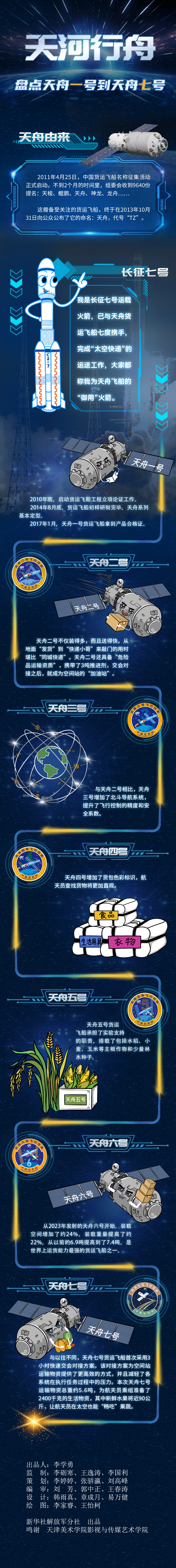 1月18日凌晨,天舟七号货运飞船与空间站组合体完成交会对接,又一批“太空快递”顺利送达。这是中国航天人第七次送天舟出征星海。天舟的名字是怎么诞生的?天舟的“御用”火箭是谁?天舟一号到天舟七号各有什么特点?一起来看看吧!