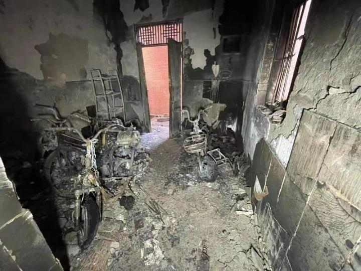 电动自行车火灾事故现场。图片来自广东消防公众号