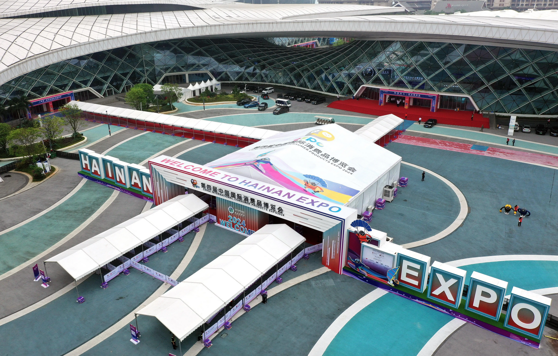 这是4月11日拍摄的第四届中国国际消费品博览会主会场海南国际会展中心(无人机照片)。 新华社记者 郭程 摄