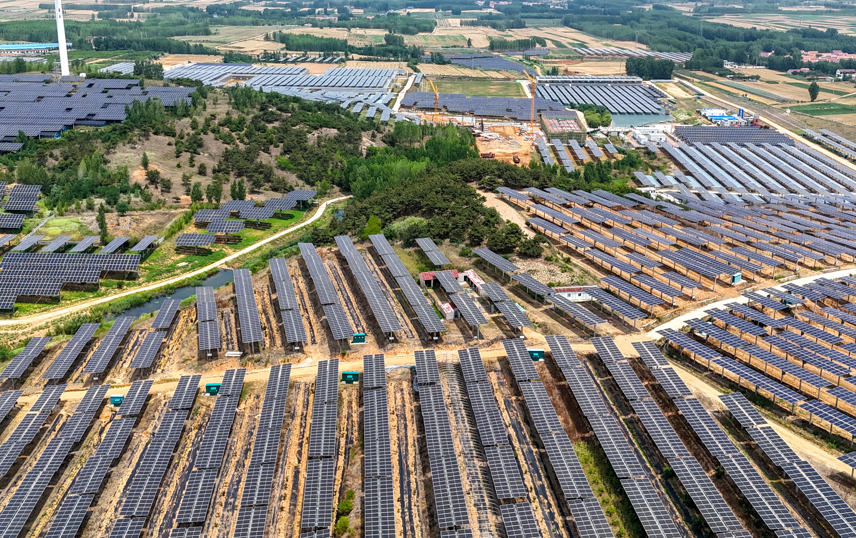 6月21日拍摄的位于青岛西海岸新区六汪镇的青岛胶河上上农业有限公司光伏项目。张进刚 摄