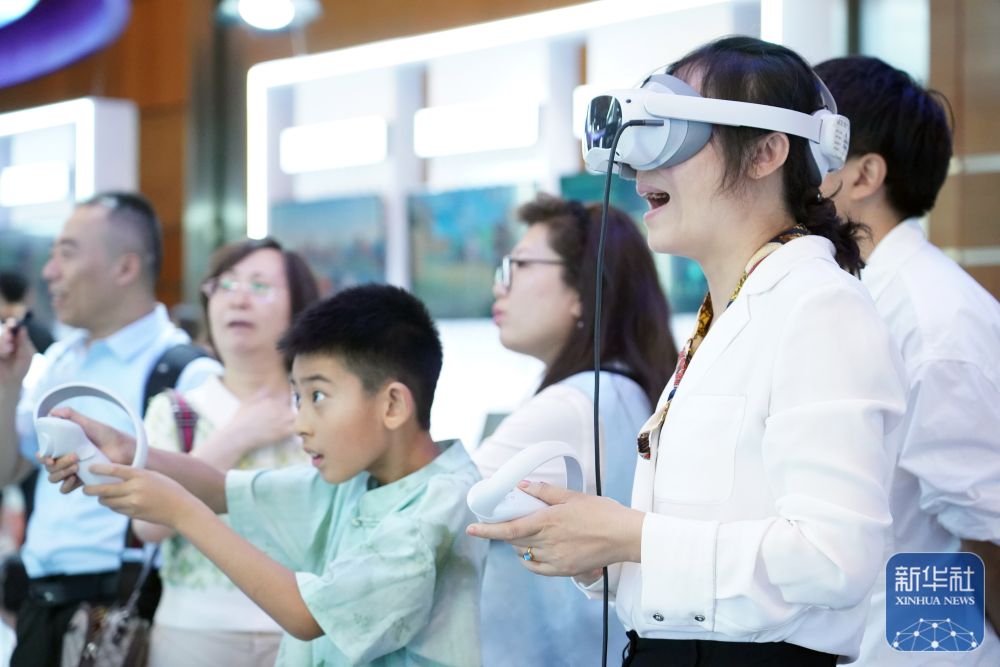 7月2日,观众在2024全球数字经济大会数字经济沉浸式体验区体验一款VR设备。新华社记者 任超 摄