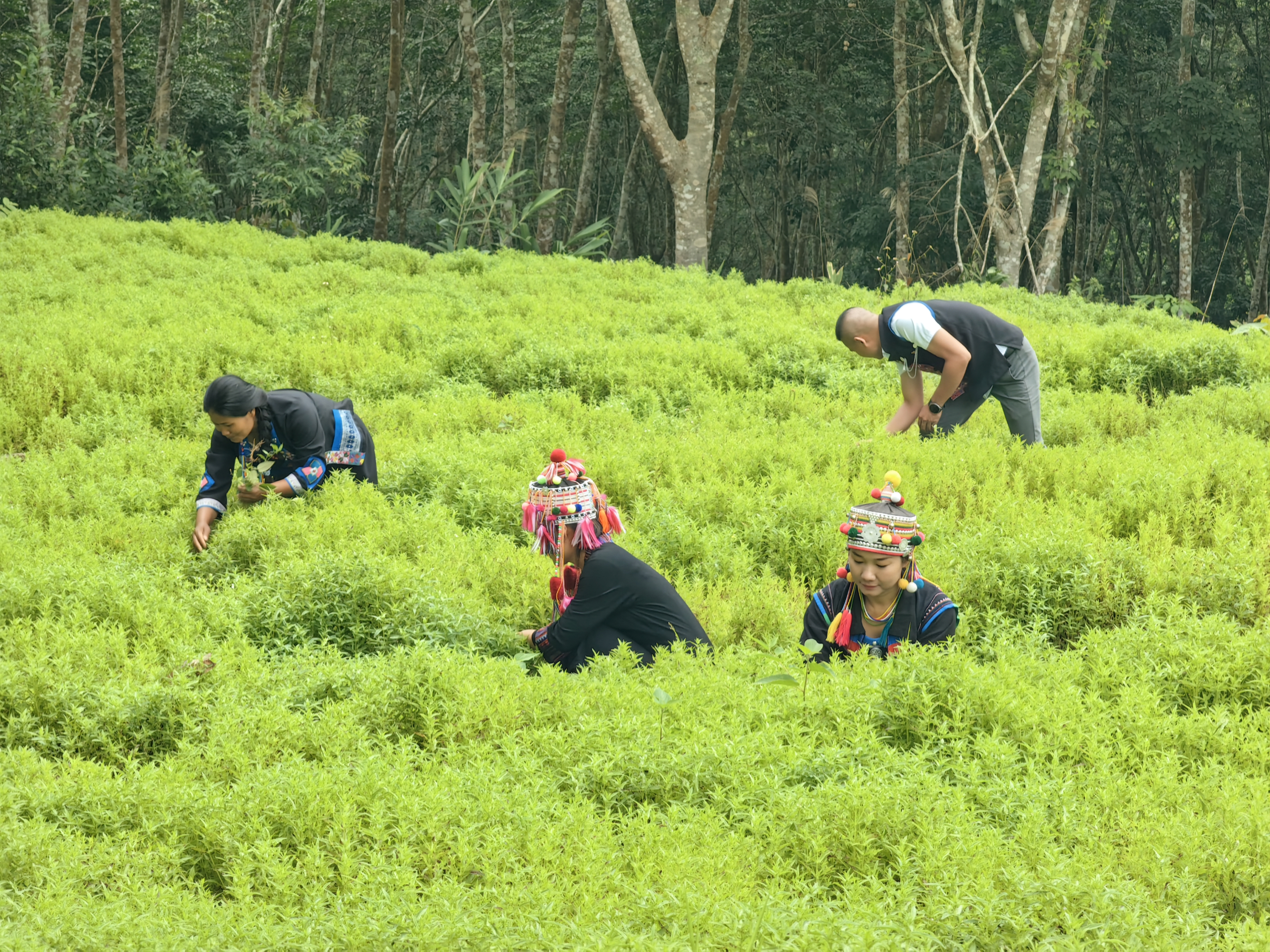 距离云南省西双版纳傣族自治州勐腊县勐仑镇6.5公里,有一个以哈尼语“苦藤菜”命名的特色村寨——大卡老寨。8月22日下午,记者跟随2024年“高质量发展调研行”主题采访活动来到这里,在橡胶等高大乔木林下,一种闻起来有特殊香气的小草成片生长。
