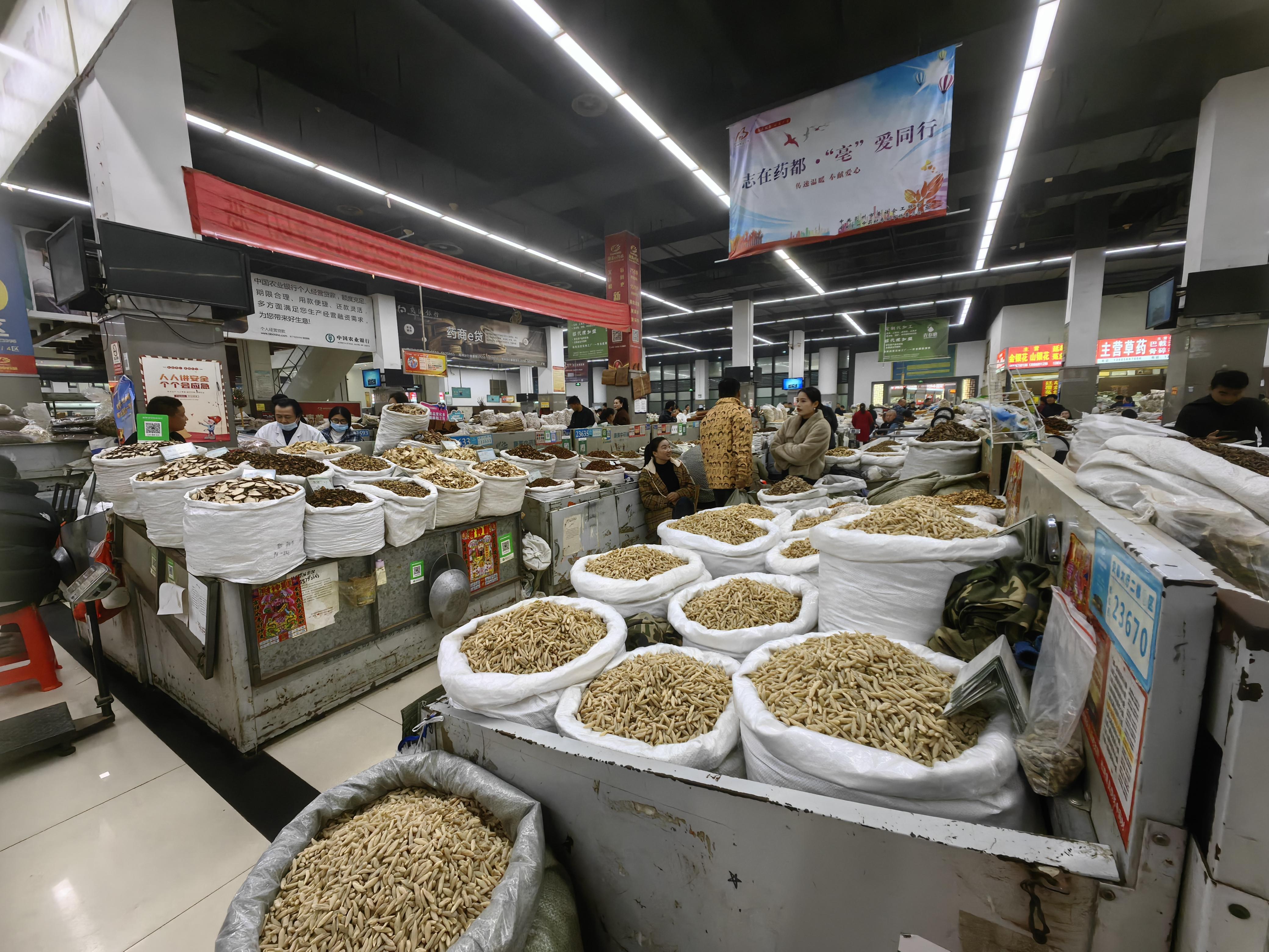 亳州中药材专业市场,又名康美(亳州)华佗国际中药城,是全国首批中药材专业市场之一。市场占地1000亩,建筑面积120万平方米,入驻药企2000多家,摊位总量超8000个,承租药商超2万人,带动就业10万人以上,日上市中药材2800余种,日客流量6万人,年交易额超560亿元,占全国同类市场交易总额近1/3。市场先后获评中国商品市场百强,安徽省级服务业集聚示范园区,连续三年获评“安徽省诚信市场”等。