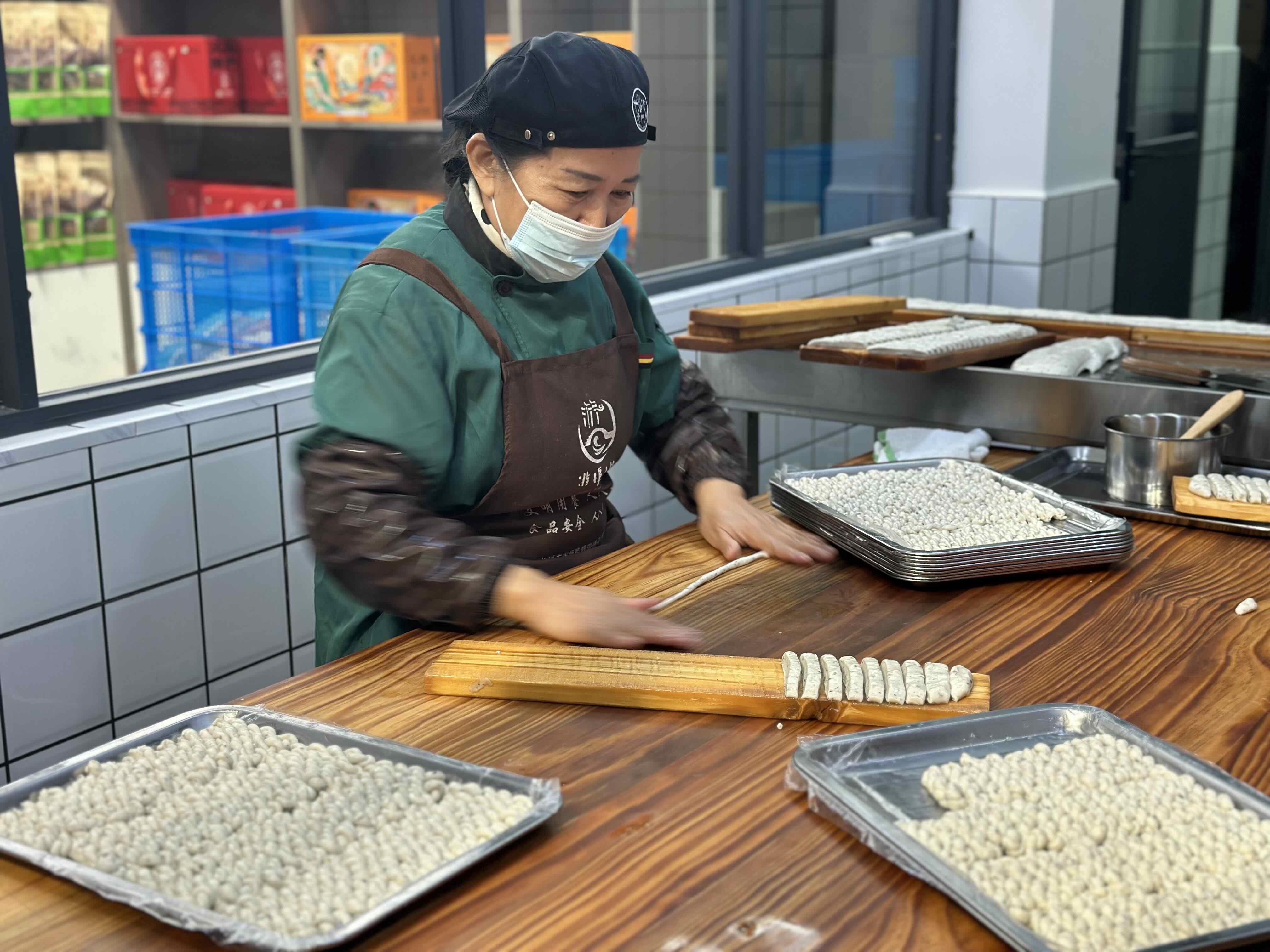 现在,古镇的餐饮业蓬勃发展,38家店铺林立,吸纳500余人就业,从传统小吃到创新美食,应有尽有。小吃虽小,却关乎民生福祉,也能成就一方产业。游埠镇党委副书记蒋有才介绍,为保持“游埠滋味”,政府搭建了小吃食材保供基地,同步链接兰溪本地蔬菜供应链,将农特产品以“订单”形式定点供应至老街餐饮店,美食产业形成了完整链条;同时,规范美食制作标准,对本地传统小吃进行改良创新、提档升级。兰溪市还专门成立美食发展中心,挖掘和发展美食产业,让烟火气升腾不息。
