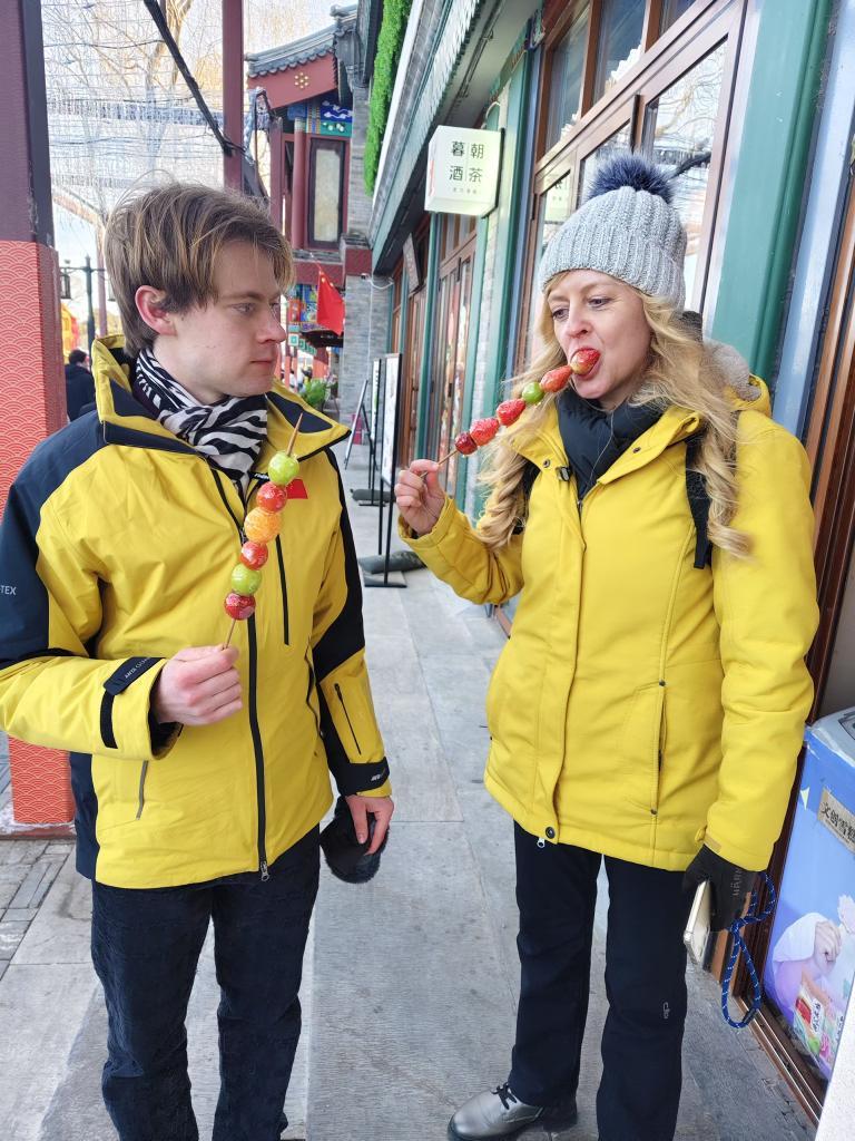 来自德国的乌尔丽克和在中国留学的儿子埃米尔一同在北京过大年。“我们逛了什刹海的集市,品尝了地道的中餐,购买了心仪的春节礼物。”乌尔丽克说,不少店家都能用英文交流,手机支付也非常方便。