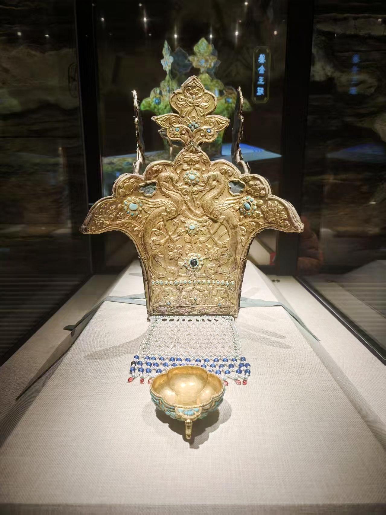 耗时5个月,冕旒终得复原。如今,在海西州民族博物馆,冕旒在王冠前静静铺陈,衬托着王冠的华丽。