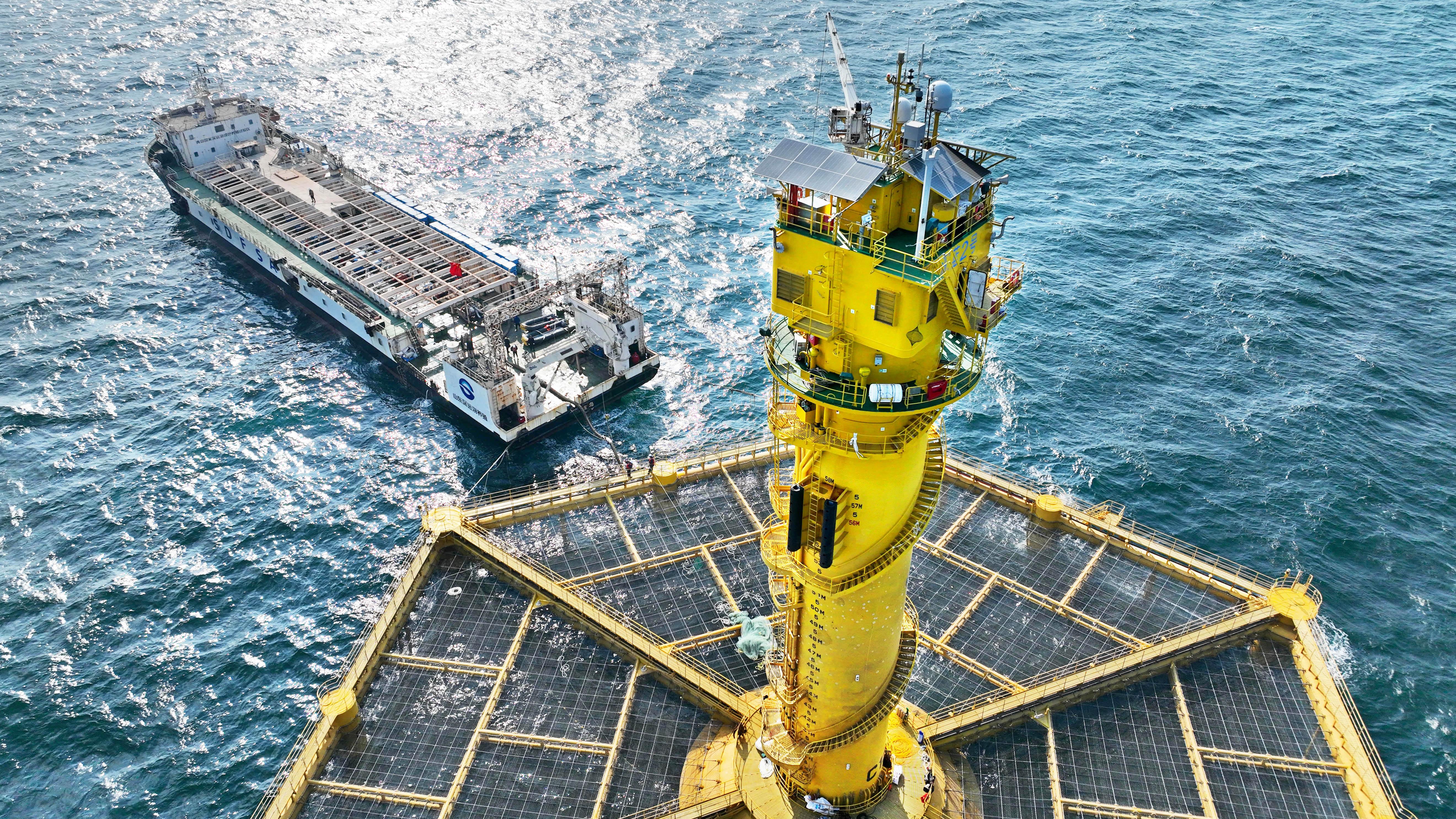 眼下,黄海深处的青岛国家深远海绿色养殖试验区,海面如一块墨玉。