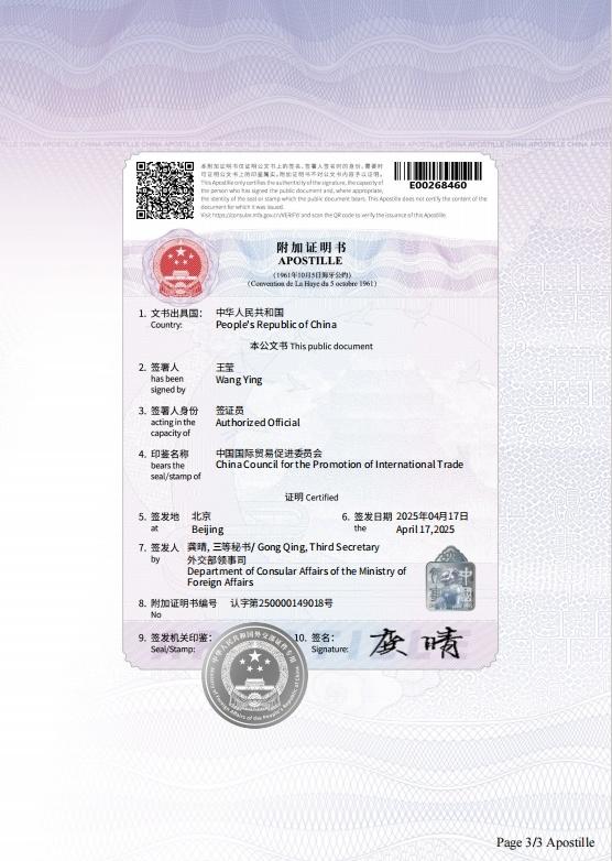 为适应文书流转电子化趋势,提高文书跨境流转效率,推动“高效办成一件事”,外交部作为我国签发《取消外国公文书认证要求的公约》规定的附加证明书的主管机关,将开始为我国境内出具的公文书签发电子附加证明书。作为试点,将自2025年6月18日起,为中国国际贸易促进委员会出具的原产地证书签发电子附加证明书。