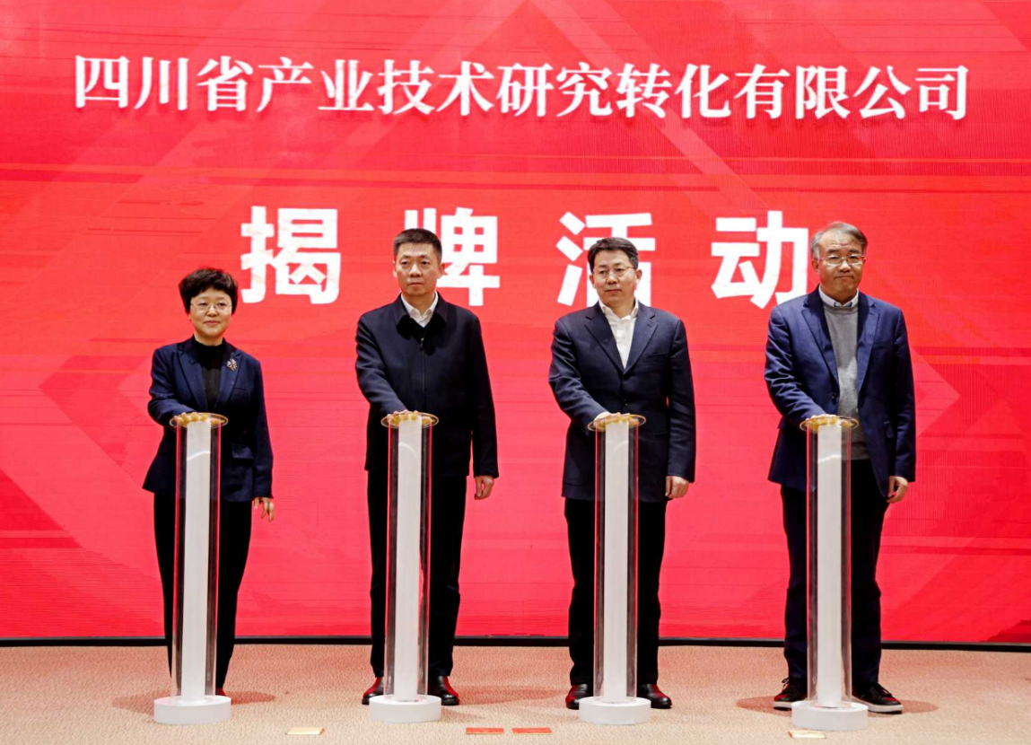 揭牌活动上,四川省委编办负责同志宣读四川省产业技术研究院、四川省科技人才研究院更名批复文件,四川省市场监管局负责同志为四川省产业技术研究转化有限公司发放工商登记证书。同时,四川省副省长陈书平,四川省政府副秘书长杨昕,四川省科技厅厅长路松明,江苏省产业技术研究院院长刘庆共同为三个单位揭牌。
