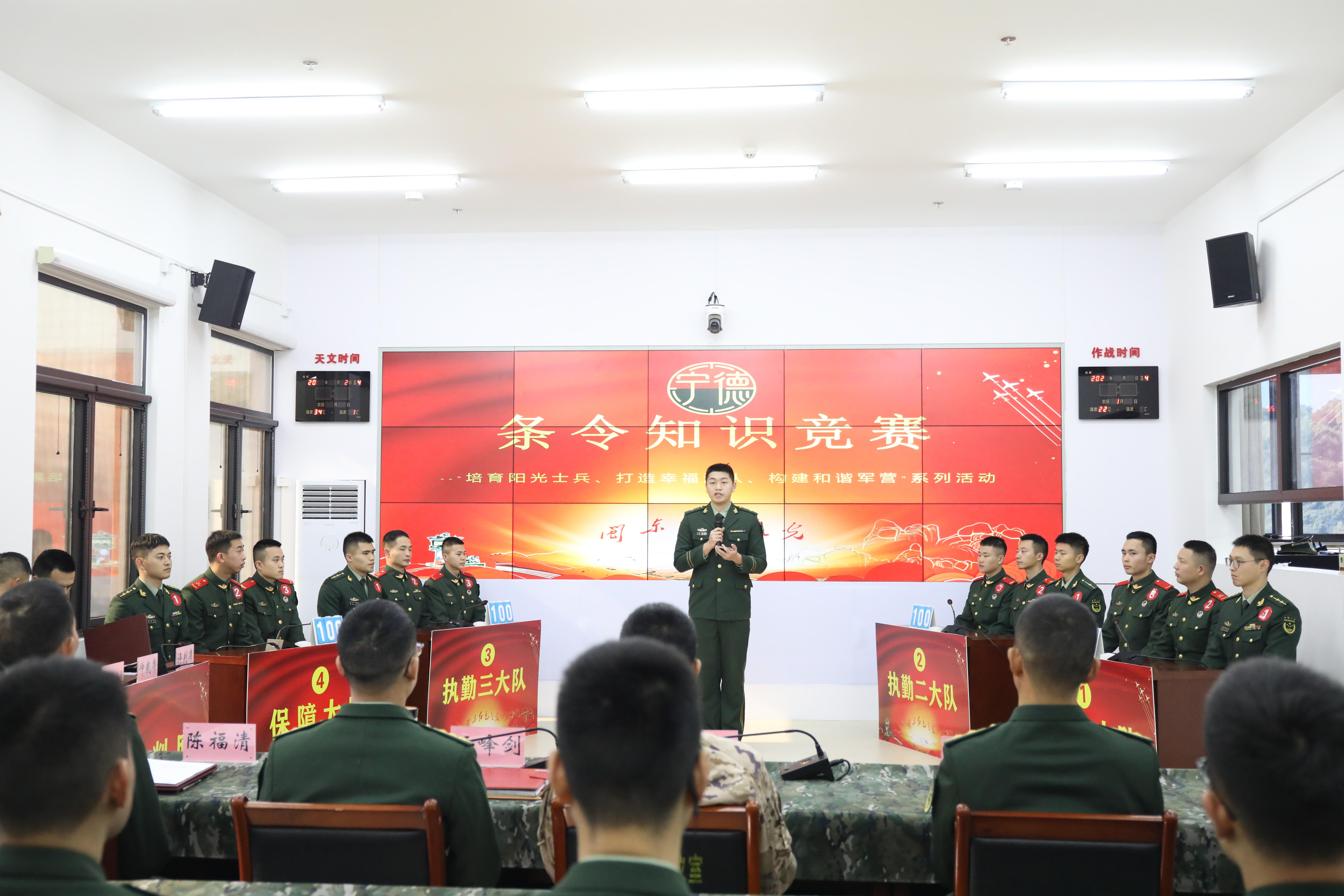 近日,武警福建总队宁德支队开展“争做阳光军人,打造幸福连队,构建和谐军营”系列活动,通过条令知识竞赛与队列会操,深化条令条例贯彻落实,夯实部队正规化建设基础,锤炼官兵法纪意识与优良作风。