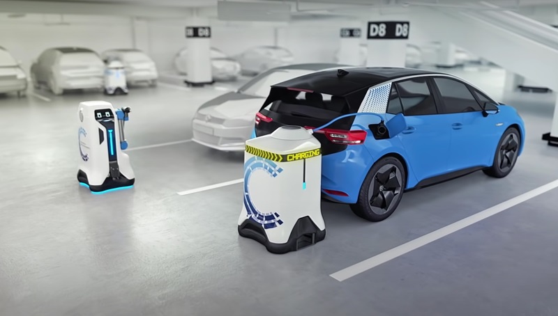 大众汽车公司和充电技术提供商“电动车安全充电”公司,也开发出可以给车辆充电的自主机器人。这些充电机器人安装在4轮底座上,由机器人和储电装置两部分组成,都配备了极其精密的传感器、扫描仪和3D摄像技术。利用智能手机应用程序或汽车的信息娱乐系统,就可将机器人召集到电动汽车旁。机器人会用机械臂打开充电端口的门,插入充电电缆。充电完成后,机器人拔下电缆,关闭端口门,然后离开。