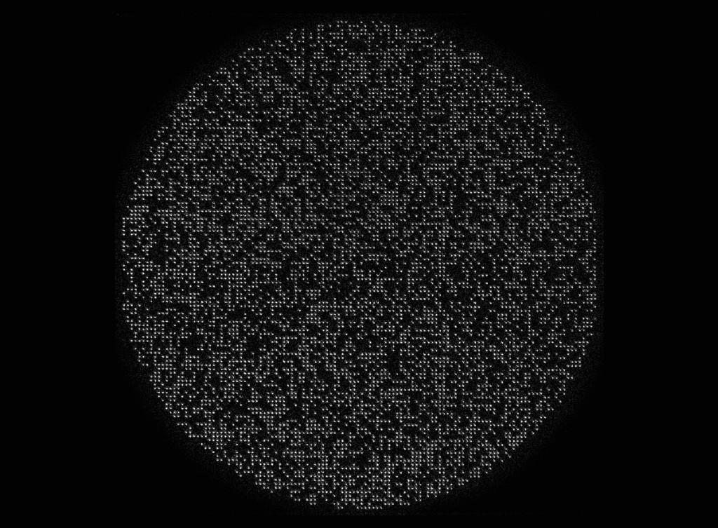 研究团队将激光束分割为12000个高度聚焦的“光镊”,在真空腔内捕获了6100个铯原子,排列成规整阵列,构建出迄今最大量子比特阵列——此前纪录为包含1180个中性原子的量子比特阵列。
