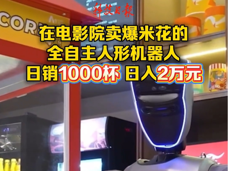 机器人在影院卖爆米花 日销1000杯 日入2万元