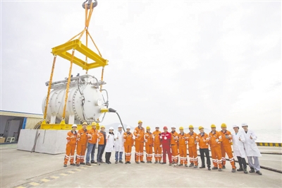 海底数据中心数据舱一期测试样机吊装入海