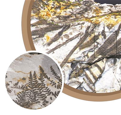 图① (左下)蕨类植物栉羊齿化石。