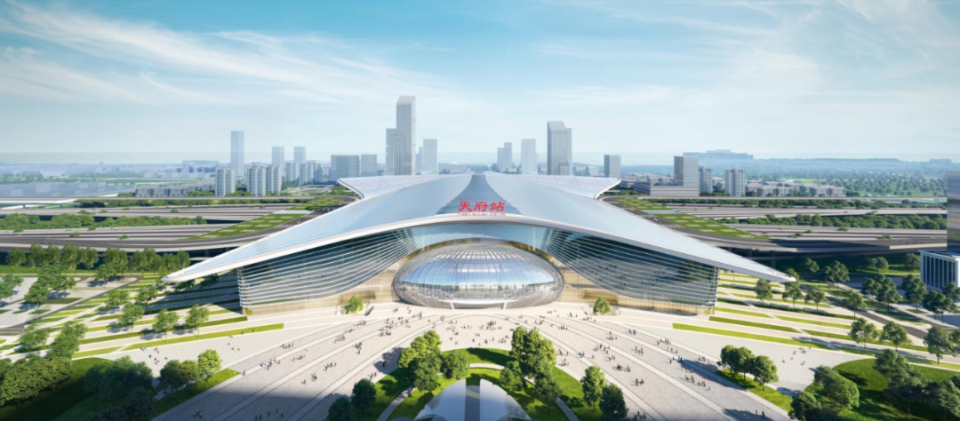 2月9日,四川成都市天府新区,正在进行站台层以上施工的天府站,钢结构的“凤凰”骨架已凌空腾起。
